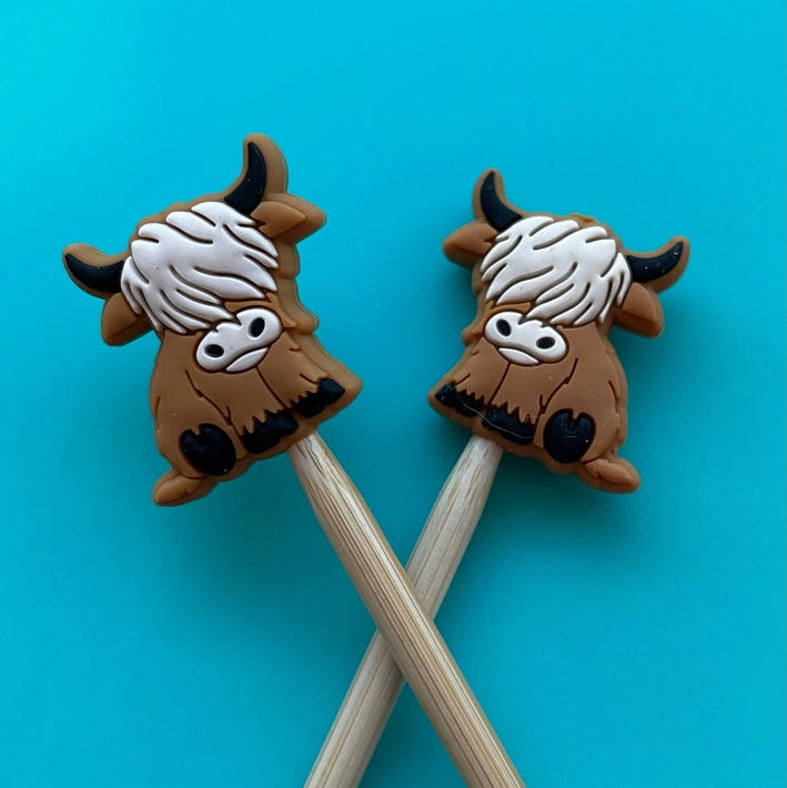 Needle point protectors are soft and slightly squishy and are made of BPA-free, food-grade silicone. Work best with needles size US 3 - US 11. Cute, but not intended as a toy!