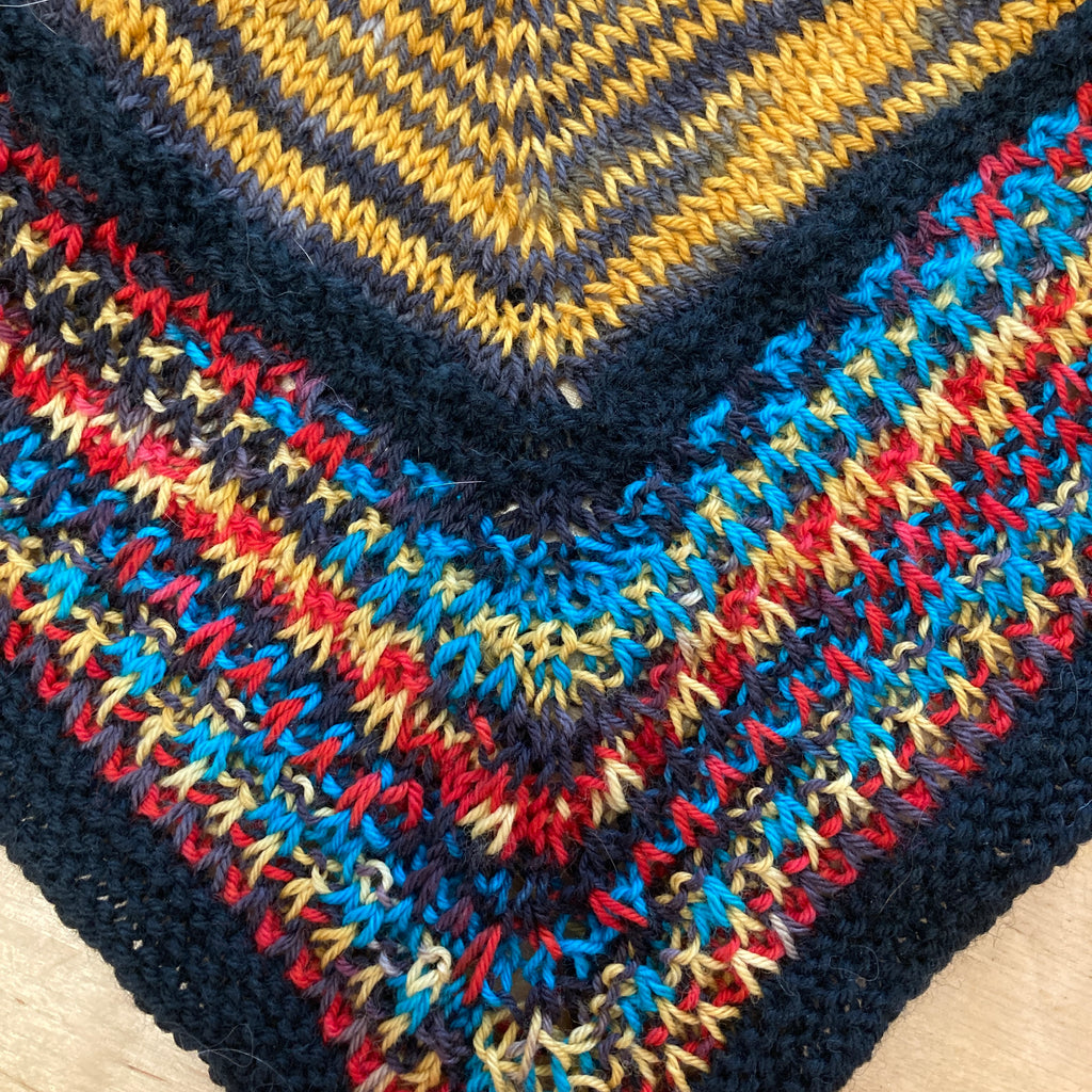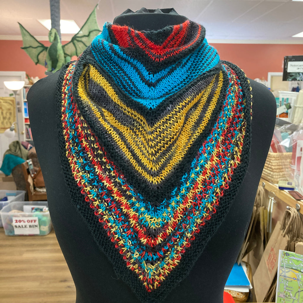 Transporter Accident Yarn: 20 grams each hand-dyed fingering weight in Star Fleet BLUE, RED, & GOLD; and 25 grams fingering weight Black