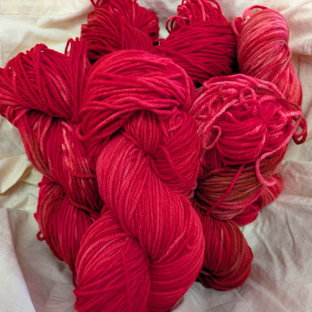 This worsted weight yarn is perfect for your Melt The Ice hat. Dyed here in our shop. The superwash is 100g, 220 yards, 100% superwash wool. The regular wool is 100g, 200 yards, 100% wool. Use US 8 needles.